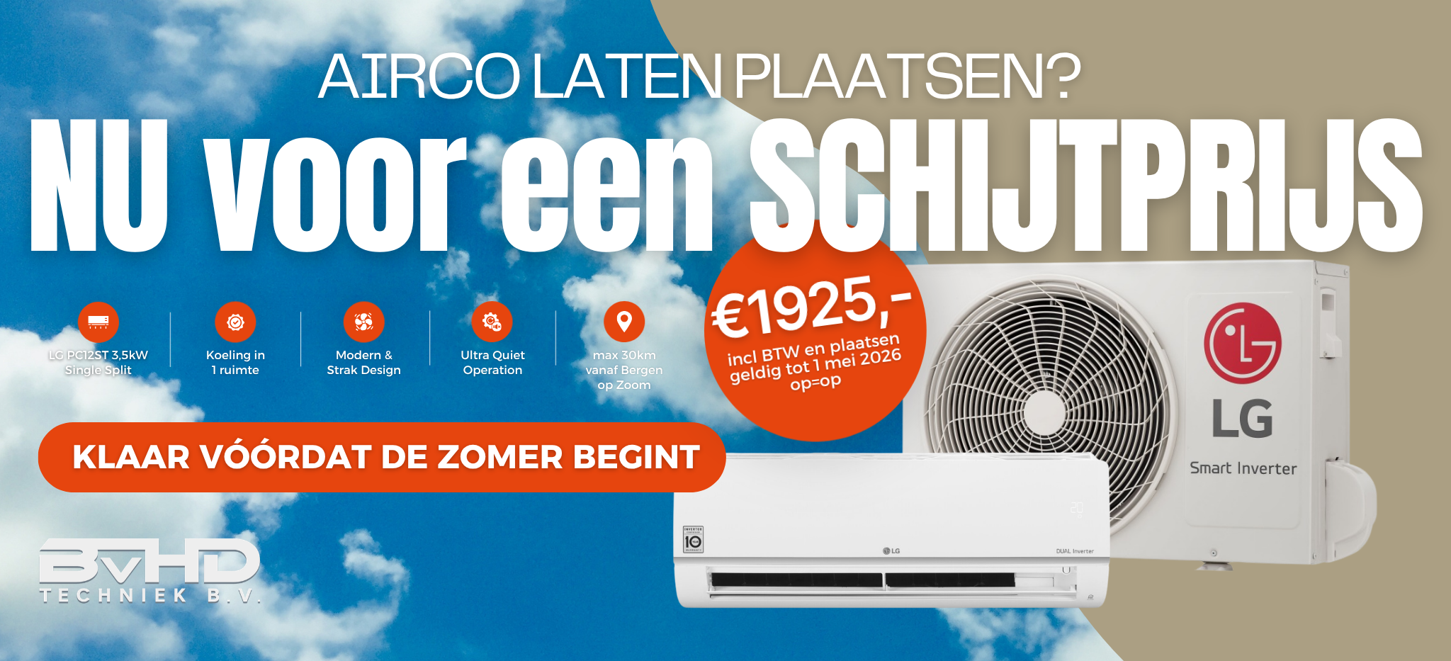 Beslis voor 1 mei en wij zorgen dat je er koel bij zit voordat de zomer begint!
